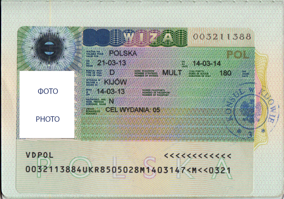 | Тип визы: | Виза в Польшу пребывание / коридор длительность дней: |